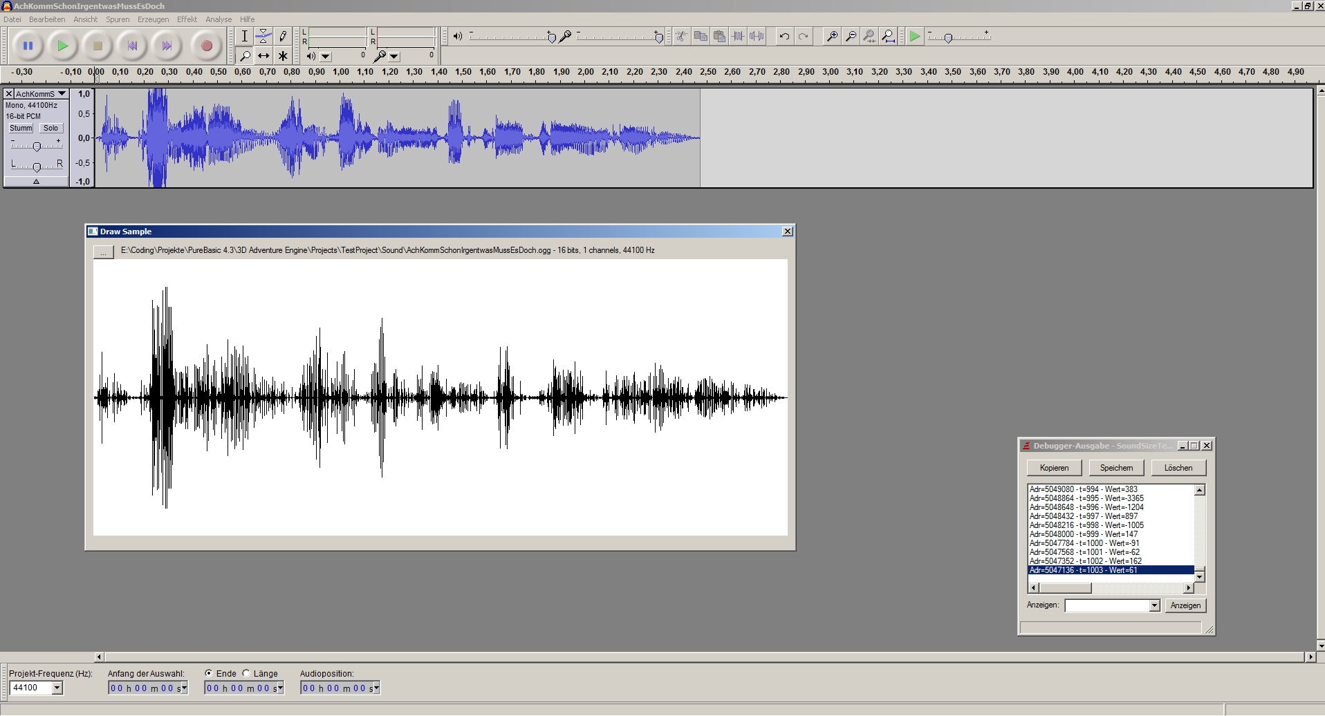Was mich schon ein bisschen fraglich stimmt ist, warum liegen die Daten vor dem Pointer, also rückwärts angeordnet? Müssten die nicht eigentlich vom Pointer aus in Richtung höhere Adressen laufen? Und warum funktionieren einige und andere nicht? Ist es möglich das manchmal der Soundbuffer in kleine Teile geteilt wird?